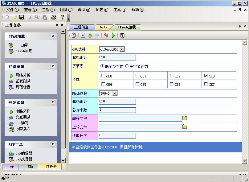 在JTAG.NET加载系统设计到CPU/FLASH的选择和处理,参看如下界面: