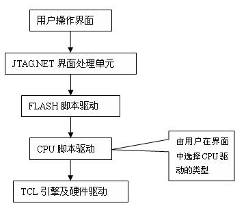 为了使JTAG.NET系统的边界扫描加载系统达到最高的加载速度,同时也达到最大的灵活性。因此,JTAG.NET中率先提出了CPU/FLASH的系统构架,来保证了系统的强大。这种构架将提速分成了两个层面。所以,可以将加速的活动集中于CPU脚本的层面。而这个层面的设计约束也是比较大的。而FLASH脚本的层面则有非常大的灵活性,这个层面几乎可以使用所有高级脚本的特性进行信息的分析和处理。